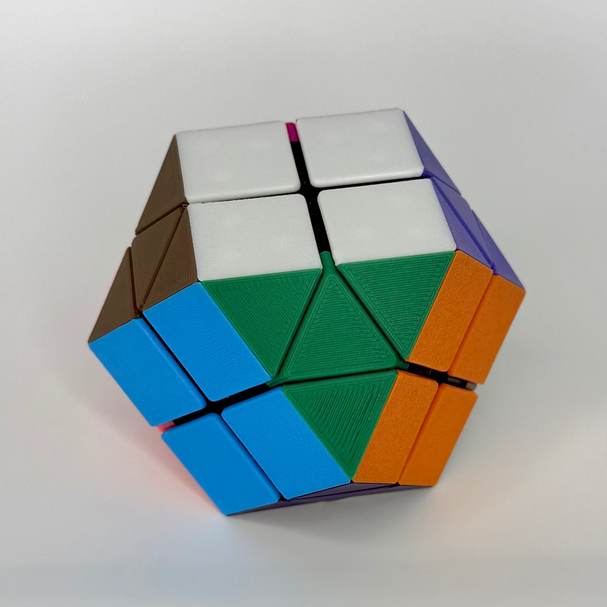 This puzzle uses the same geometry as the classic Rainbow Cube (circa 2001). This is an independently designed modern implementation and is not affiliated with the original creators.